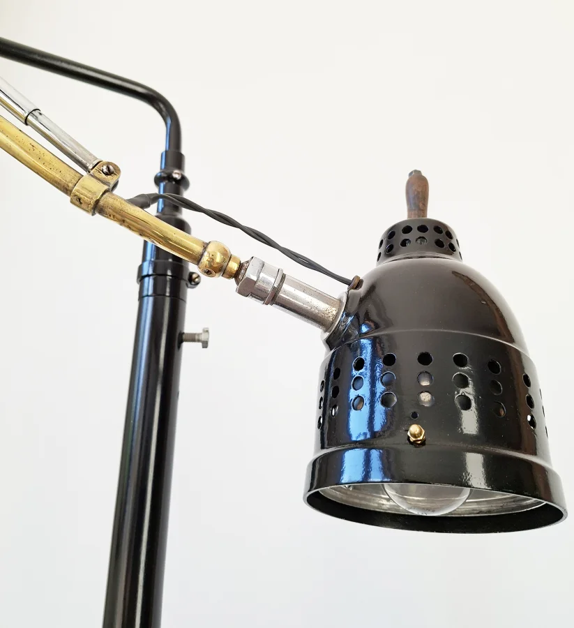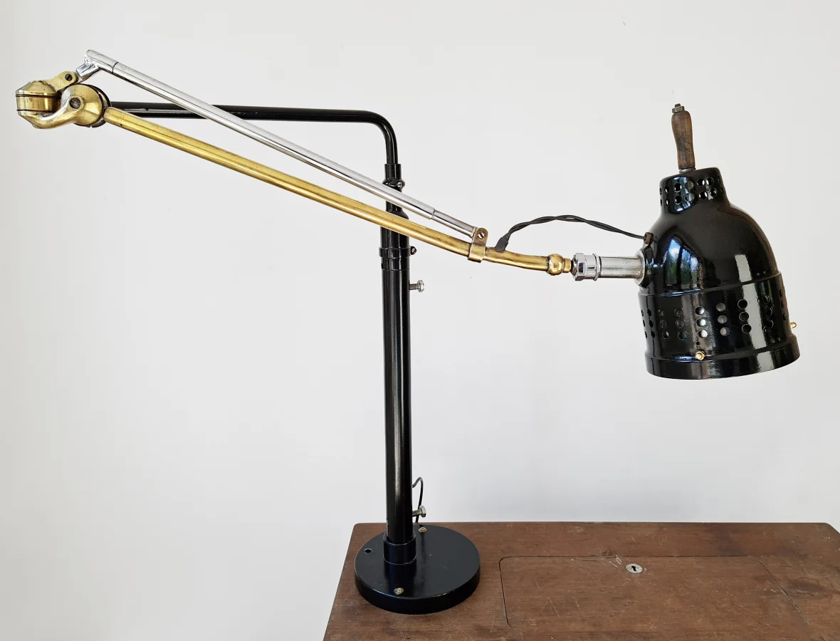 € 592 ≈ $693 USD 1 EUR = $1.1700 · 2026-04-25This Ritter antique dental lamp, dating from 1930, has been fully restored and is in excellent working order. It has been thoroughly cleaned, tested, and all electronics, including wiring, have been replaced with new components. While exhibiting a charming age-appropriate patina, the base has been uniquely adapted for use as a stable table lamp. Please note its substantial weight; secure fastening to a tabletop with screws is recommended for safety and stability. There are no known defects, ensuring a reliable and beautiful vintage piece.